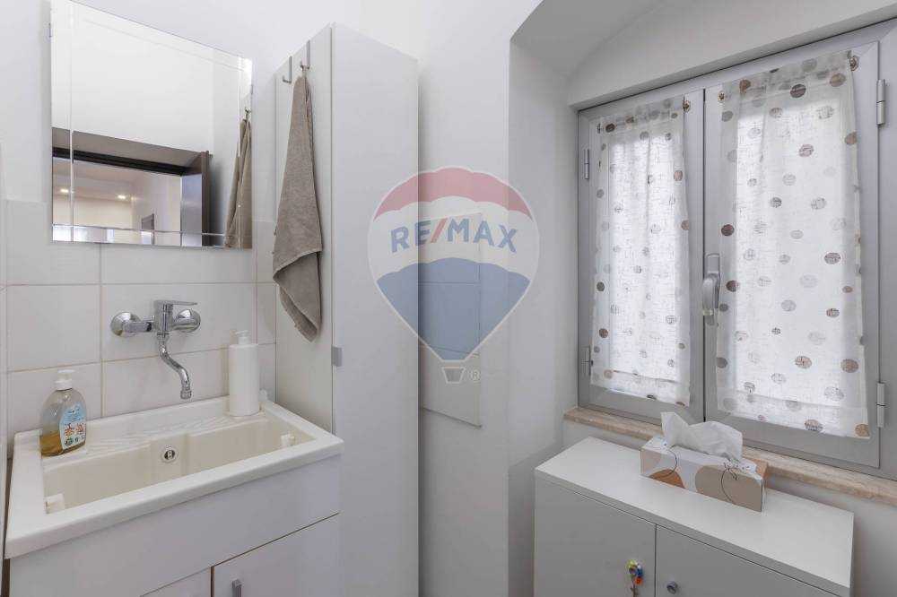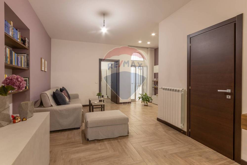 Al primo piano troviamo una luminosa ed elegante zona living open space finemente arredata con cucina abitabile, ripostiglio, antibagno e bagno con doccia