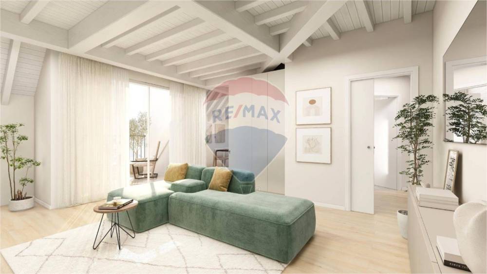 La soluzione si compone di un ampia zona living con accesso diretto sul terrazzo loggiato, una moderna cucina abitabile, due ampie camere e servizi, dotato di riscaldamento a pavimento e impianto fotovoltaico.