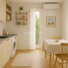 L’ingresso si apre su un ampio soggiorno con parquet e grandi finestre, ideale come zona living e relax. La cucina semiabitabile, separata e funzionale, gode di accesso diretto al balcone.