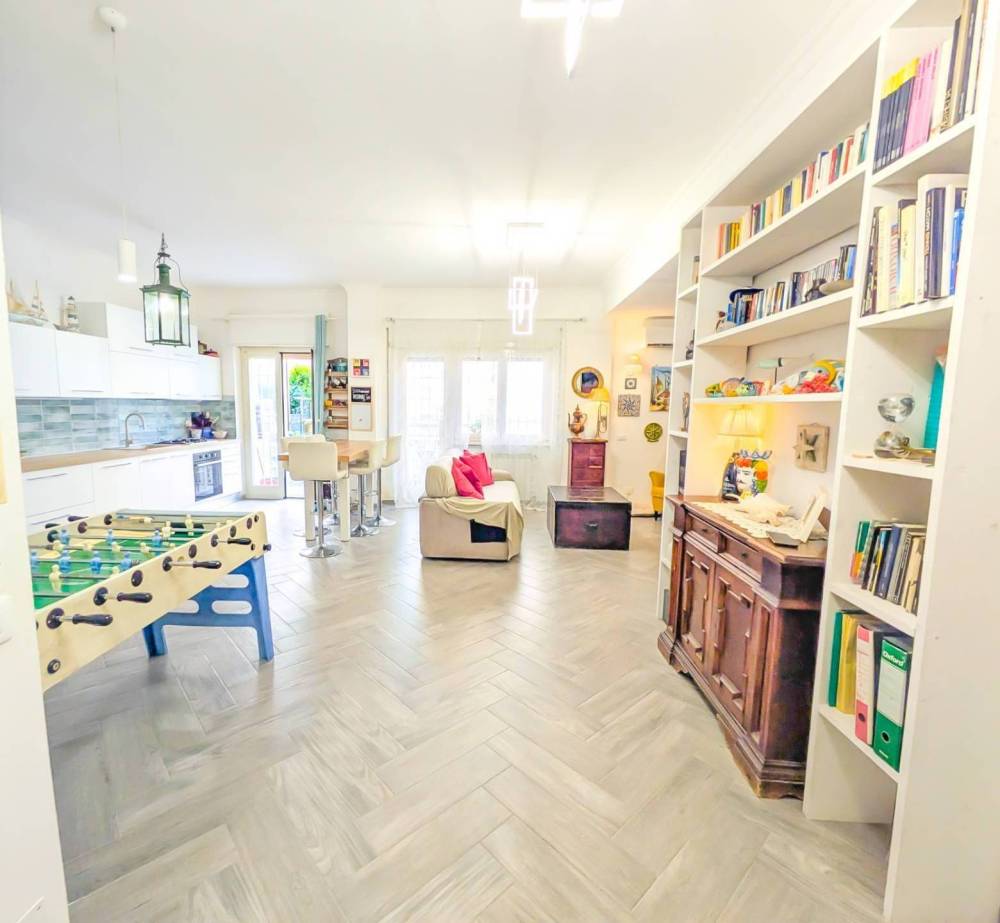 La recente ristrutturazione ha valorizzato ogni ambiente con materiali moderni e di qualità, creando spazi accoglienti e contemporanei.