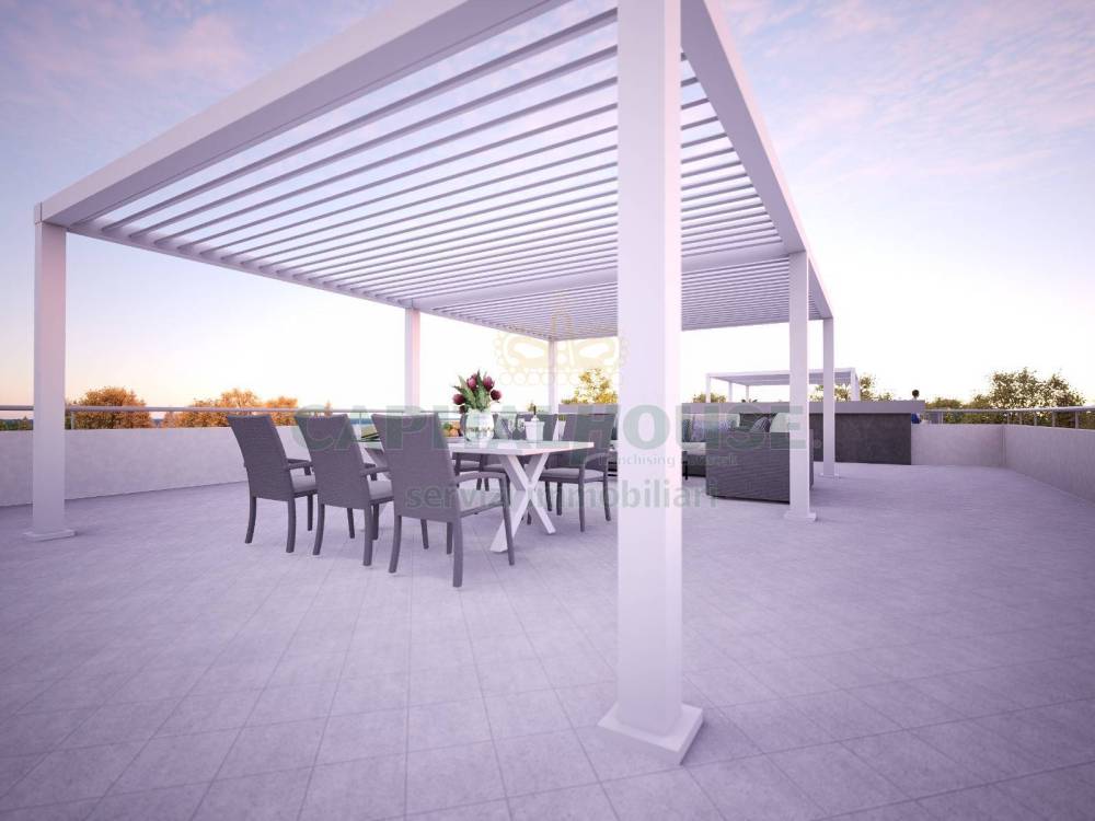 Lappartamento, di circa 110 Mq, è composto da: ampio soggiorno luminoso con cucina che affaccia su balcone terrazzato con la profondità di 3 Mt, tre camere da letto, doppi servizi e balconi di 55 Mq con doppia esposizione, che assicura aria e luce durante tutto il giorno.