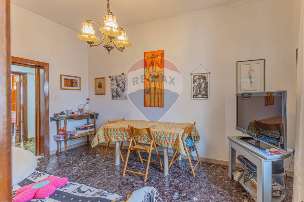 Sul lato opposto si sviluppa il soggiorno, con affaccio diretto su Via Zanfarino: un ambiente luminoso e ideale per accogliere gli ospiti o organizzare serate conviviali.