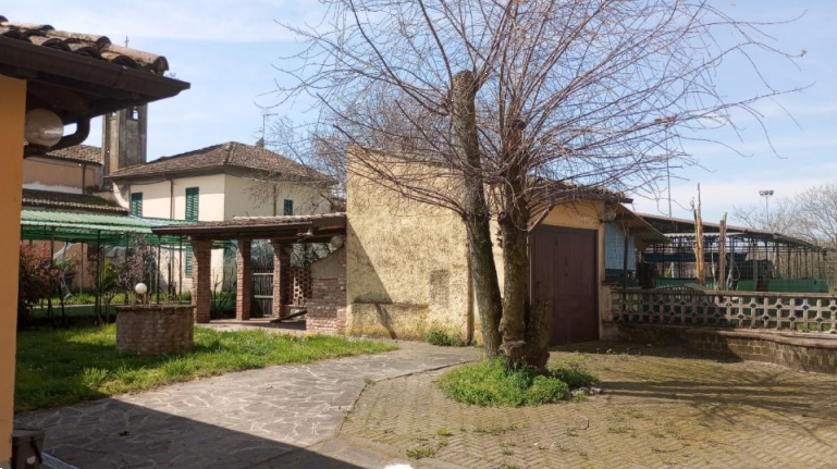 Completa la proprietà un'ampia corte pavimentata e giardino, un piccolo edificio ad uso box con tettoia e deposito legna, un'autorimessa e un fabbricato su tre piani adiacente in stato fatiscente. Una soluzione ampia e versatile, ideale per residenza principale con spazi accessori.