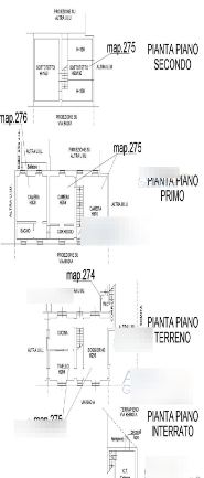 L'immobile è così costituito: al piano interrato cantina; al piano terra ingresso con scala di accesso al primo piano, cucina, tinello, soggiorno, wc e disimpegno con scala per l'accesso al pia-no interrato; al primo piano tre camere, corridoio, wc, ballatoio e scala per l'accesso al piano secondo; al secondo piano locale sottotetto.