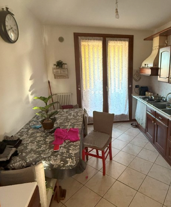 Appartamento al secondo piano con annessa autorimessa al piano terra facente parte di edificio condominiale munito di ascensore situato a Spinea (VE), località Fornase in via Prati. Appartamento composto da un ingresso-soggiorno, una cucina, disimpegno, due bagni, due camere da letto, gode di tre affacci di cui due dotati di balconi (soggiorno e cucina).