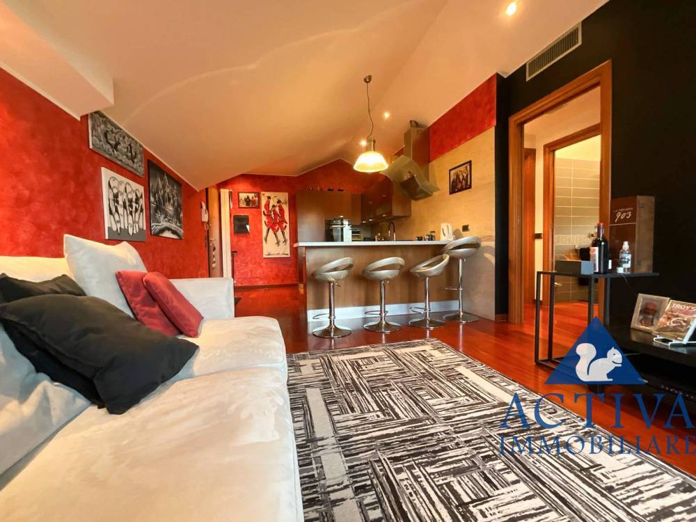 La metratura interna, sebbene contenuta, è ottimizzata con cura, resa più ampia dalla doppia esposizione, dal balcone e soprattutto dalla mansarda, che moltiplica il valore percepito dellimmobile minimizzando il limite dellampiezza.