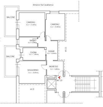 L'appartamento posto al secondo piano della palazzina, è servito da ascensore ed è composto da ingresso, luminoso soggiorno, cucina abitabile, due camere, un bagno e due balconi.