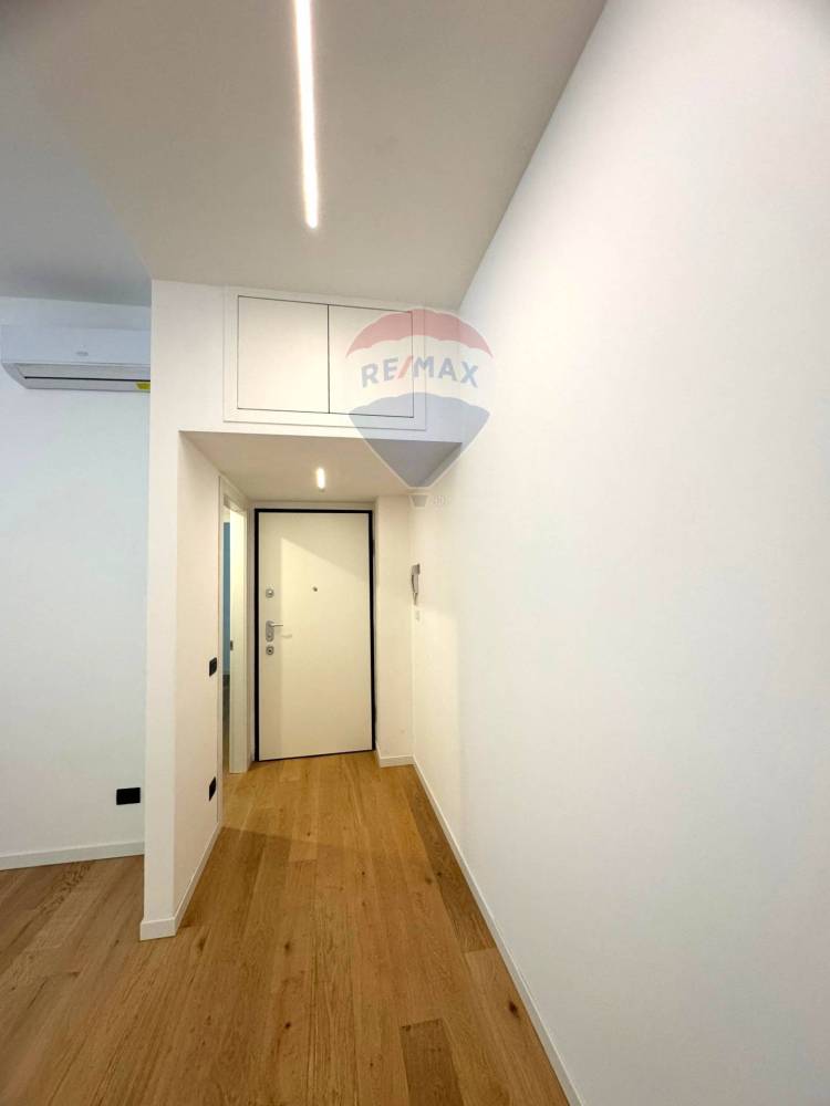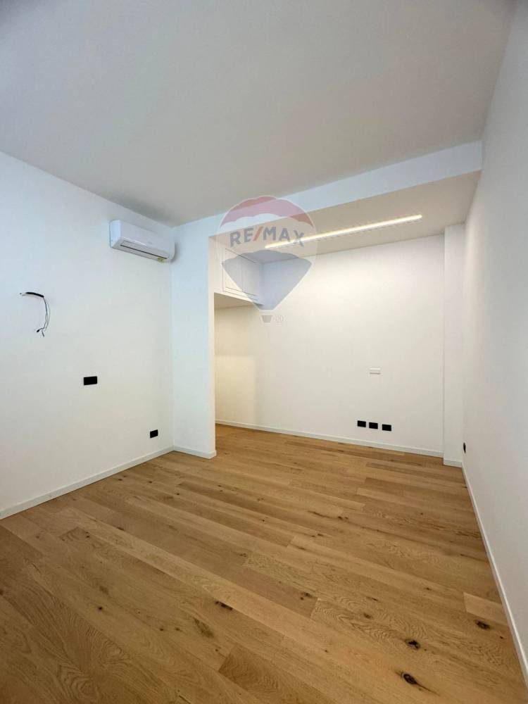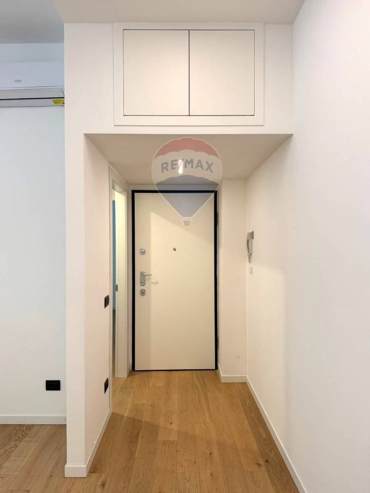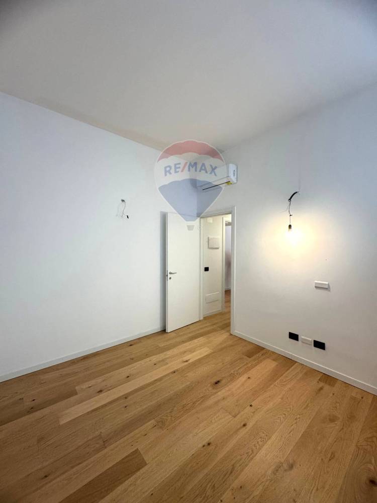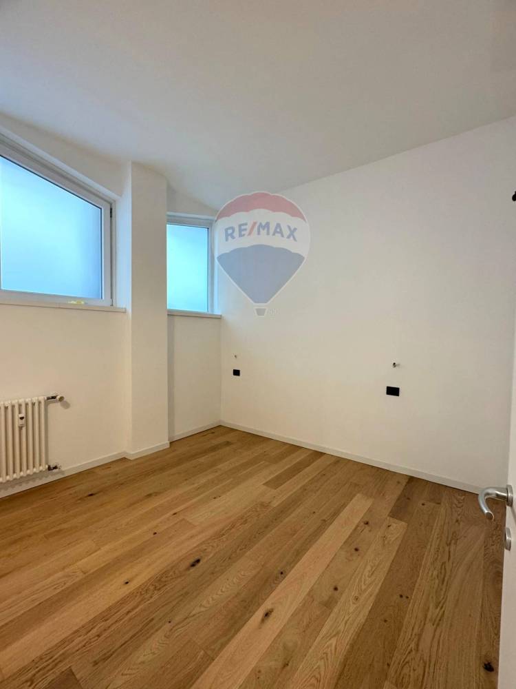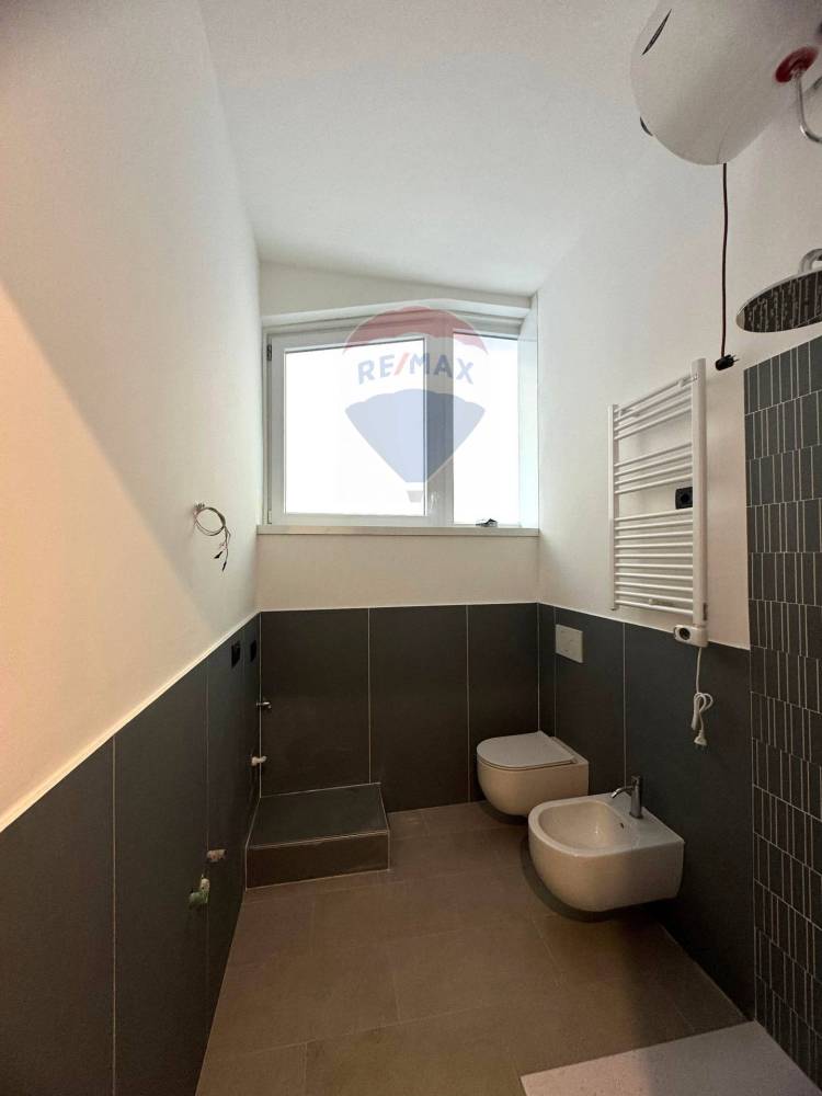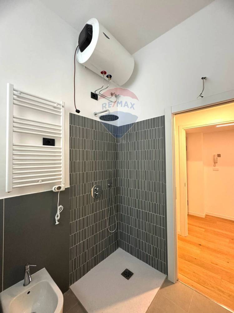 La zona notte è rappresentata da una camera matrimoniale confortevole e silenziosa, mentre il bagno finestrato, elegante e rifinito in gres porcellanato, ospita un pratico box doccia e sanitari moderni.