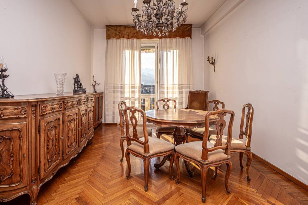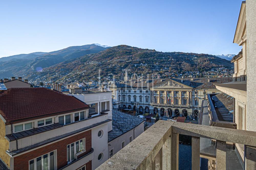 Nel cuore del centro storico, all’interno di un elegante palazzo d’epoca, proponiamo un ampio e prestigioso appartamento che, grazie alla posizione elevata e alla sua collocazione privilegiata, offre uno scorcio suggestivo su Piazza Chanoux e una piacevole apertura visiva verso il profilo montano. L’unità abitativa, posta al quinto piano e servita da ascensore, si sviluppa su due fronti liberi est-ovest, assicurando un’illuminazione naturale particolarmente gradevole nelle ore pomeridiane. La distribuzione interna prevede un raffinato disimpegno d’ingresso pavimentato in marmo, corredato da un comodo ripostiglio. Sul fronte ovest si articolano la camera matrimoniale con armadiature in stile veneziano e due eleganti sale di ampia metratura, una delle quali dotata di balcone affacciato sul centro storico. Il lato est ospita invece un vano dispensa, una cucina abitabile, il bagno e un secondo balcone, arricchito da veranda e ulteriore ripostiglio. Completano la proprietà una soffitta ubicata al piano sottotetto e una cantina al livello interrato. Grazie alla posizione di pregio, alla vicinanza a ogni tipo di servizio, collegamento e alla collocazione all’interno di un palazzo storico, questo appartamento rappresenta un’opportunità rara: una residenza esclusiva, pensata per chi desidera vivere il centro storico con il massimo livello di eleganza e qualità abitativa.
