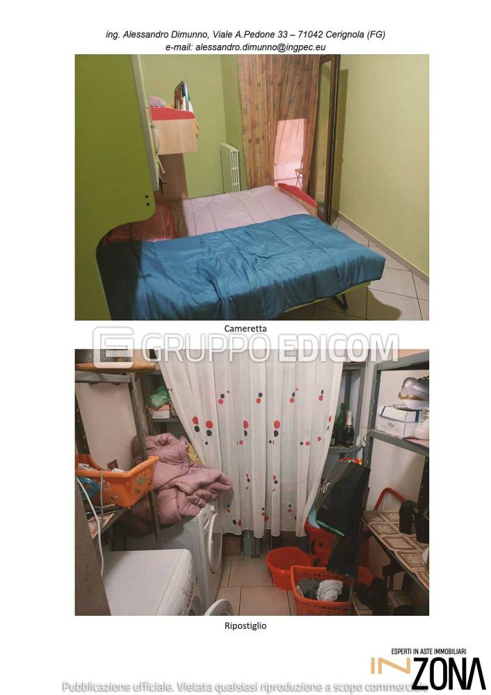 ASTA ---- PREZZO and euro; 17.114,18 --- RISPARMIO and euro;55.000nAppartamento composto da tre camere, soggiorno cucina, corridoio, ripostiglio ed un bagno. E' provvisto di due balconi.nL'appartamento sviluppa una superficie lorda di circa 103 mq.nL'unità immobiliare appartiene alla Classe energetica and quot;D and quot;.nnData venditan05/02/2026 - 17:00nnPrezzo basen and euro; 22.818,91nOfferta miniman and euro; 17.114,18nnTi piacerebbe comprare una casa all'asta ma non sai come fare perché non sei un esperto?nContattaci per avere maggiori informazioni su questo immobile e su come poterlo acquistare in totale sicurezza.nINZONA offre un servizio di ASSISTENZA TECNICO - LEGALE per l'acquisto di immobili in asta attraverso queste attività:nPRIMA CONSULENZA: Appuntamento presso la nostra sede di Foggia, presso il Centro direzionale E9 in Via Donato De Leonardis, 2 - 71121 Foggia (FG), per offrire chiarimenti sulle aste ed ascoltare le tue esigenze immobiliari.n- Mediazione creditizian- studio fattibilità per la partecipazione in asta con mutuo fino al 100%n- Studio della perizia e della documentazione dell'immobilen- Accertamenti catastali per eventuali abusi edilizin- Accompagnamento Visita Immobilen- Disbrigo pratiche per la partecipazione all'asta (anche solo compilazione della domanda)n- Rappresentanza Legale il giorno della venditan- Rilascio del decreto di trasferimento in tempi brevin- Assistenza per il Saldo Prezzon- Compilazione F24 per Tassen- Disbrigo Pratiche per Eventuale Sanatorian- Assistenza alla Consegna ImmobilennContattaci per avere maggiori informazioni sull'immobile e su come partecipare all'asta.nnn