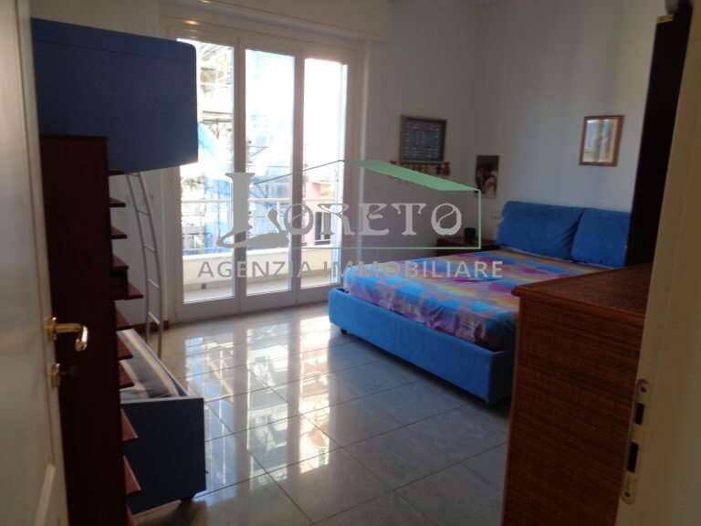 Scopri questo splendido appartamento situato in una posizione centrale e pianeggiante, a soli 20 metri dal mare e adiacente al lungomare. Questo immobile, completamente ristrutturato, si trova al quarto piano di un edificio dotato di ascensore, offrendo una vista impareggiabile e un'ottima esposizione solare. Con una superficie commerciale di 130 m², l'appartamento è composto da un ingresso accogliente, un ampio salone con angolo cottura, tre camere da letto spaziose e due bagni luminosi, entrambi con finestra.
