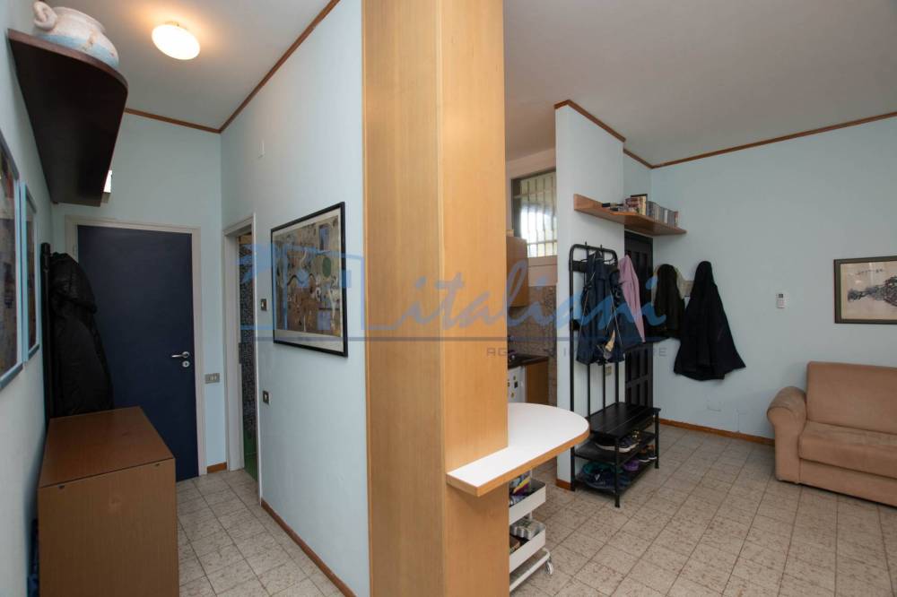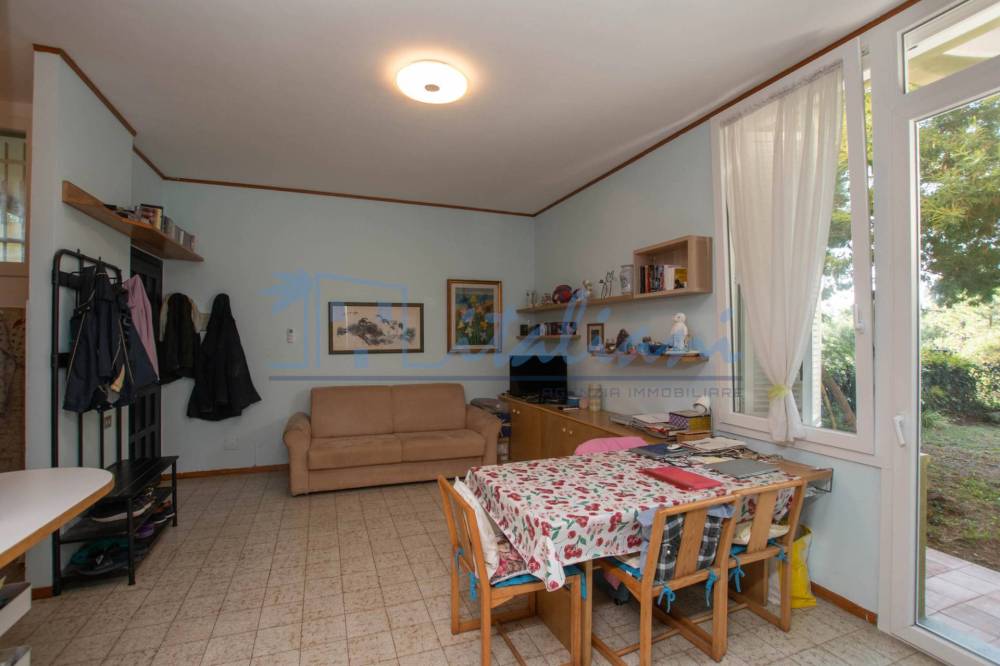 Varcata la soglia di ingresso si accede al soggiorno con cucina a vista che affaccia sul giardino rivolto a ovest. Alla destra dell'ingresso si trova la zona notte, composta da camera da letto matrimoniale e bagno, finestrato e dotato di vasca . Dalla porta finestra situata nella camera si accede nuovamente al giardino. A completare cantina.