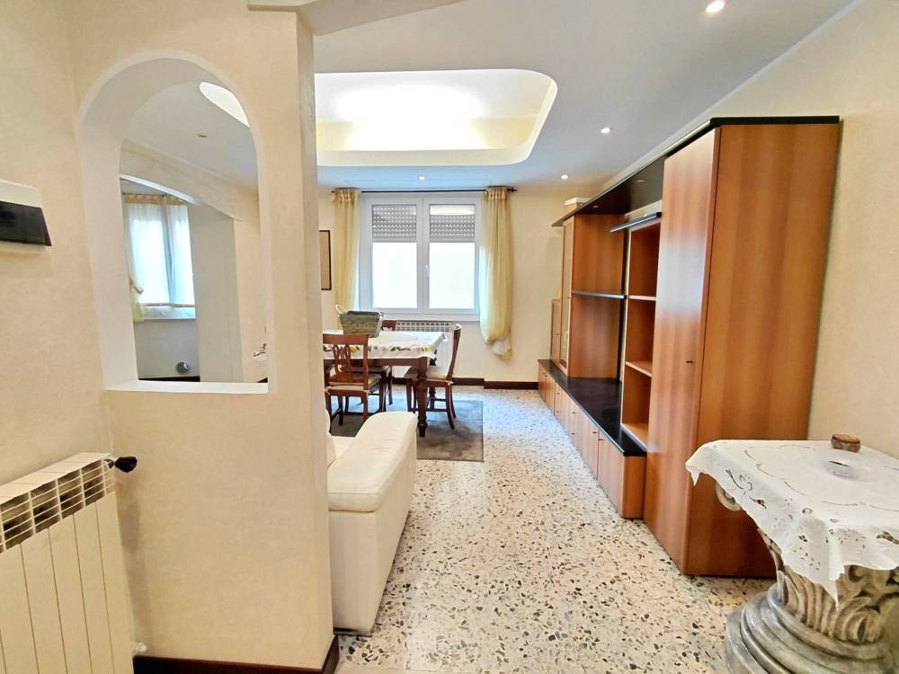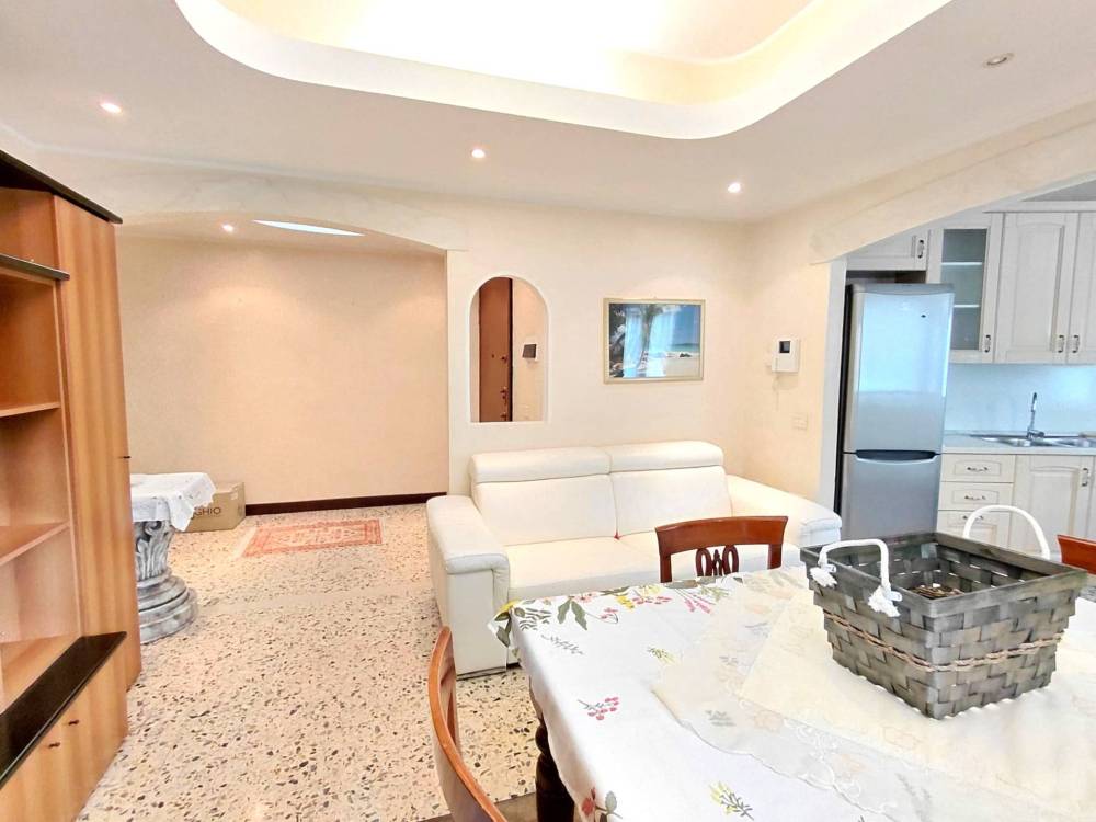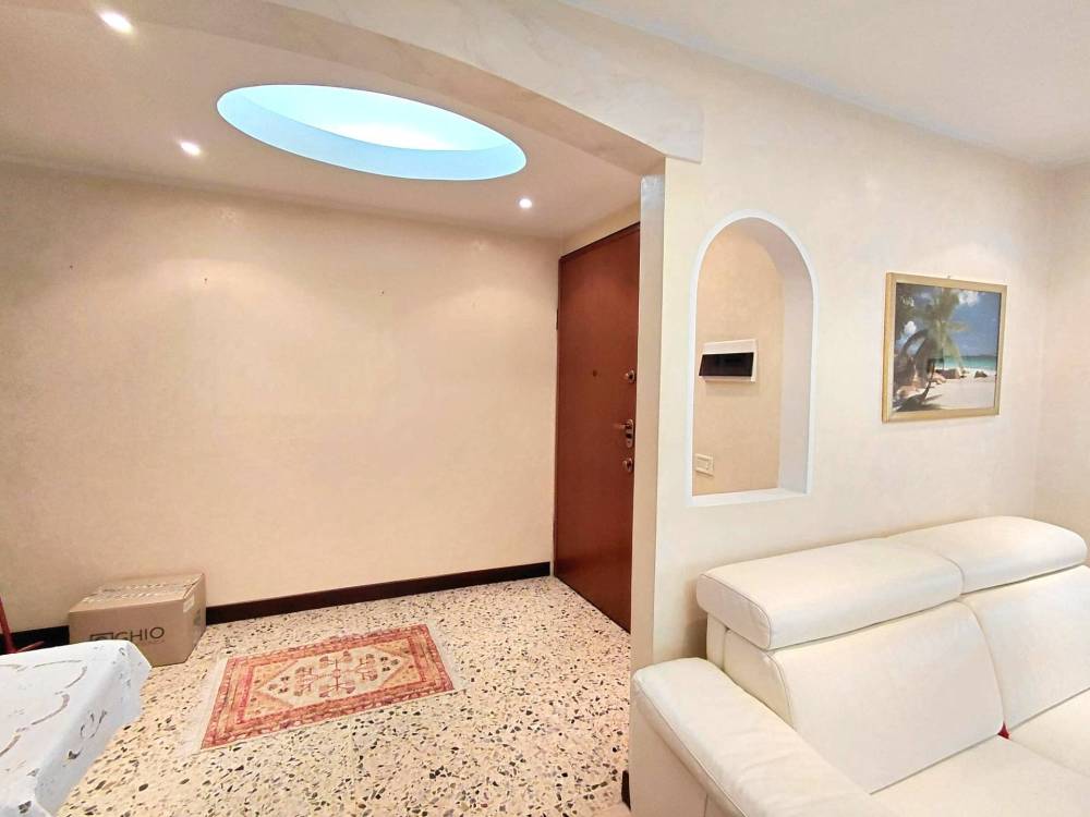 Limmobile si apre su un comodo ingresso accessoriato con controsoffitti e illuminazione ad incasso e che conduce allampio soggiorno, anch'esso dotato di controsoffitto e con cucina a vista (separabile). Un ambiente accogliente, funzionale, dalle generose metrature, arioso e abbondantemente illuminato dalla presenza di numerose finestre. La zona notte, ben distribuita, comprende atrio arredabile, due ampie camere matrimoniali, entrambe dotate di balcone, e un bagno finestrato con doccia.