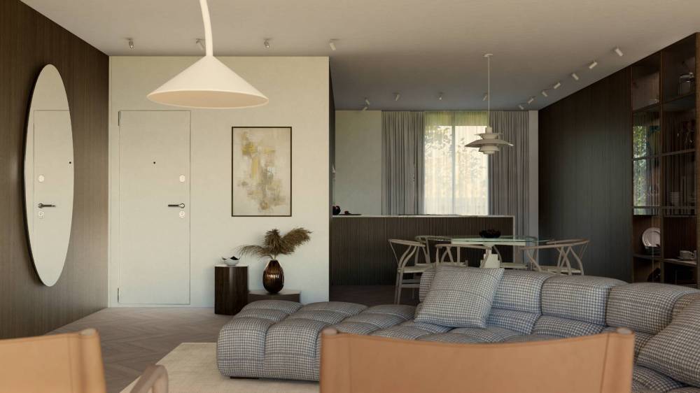 L'appartamento, in corso di costruzione, sarà terminato per Giugno 2028 con rifiniture a scelta dell'acquirente come e pavimentazioni in parquet o Grace porcellanato, infissi in alluminio certificati, impianto di riscaldamento a pavimento, impianto di climatizzazione caldo e freddo con split in ogni stanza, portoncino blindato d'ingresso, video citofono smart con risposta da smartphone, illuminazione esterna del fabbricato Guzzini, struttura antisismica.