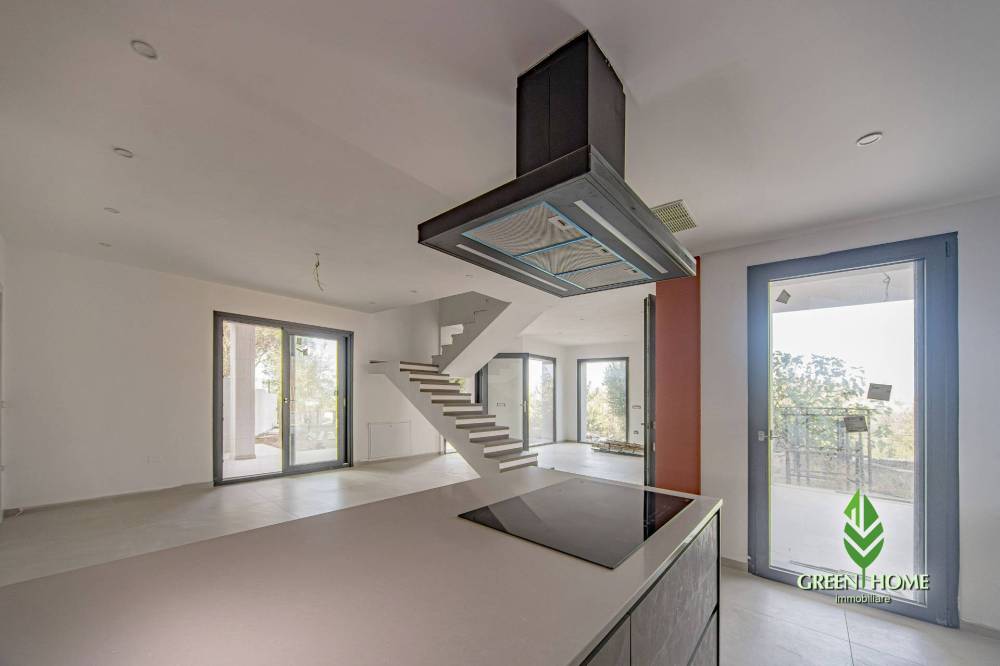 Ogni ambiente è climatizzato e servito da un impianto di riscaldamento/raffrescamento a pavimento autonomo alimentato da pannelli fotovoltaici con batterie daccumulo, per vivere in totale comfort durante tutto l'anno.