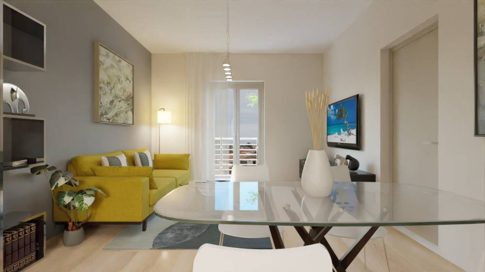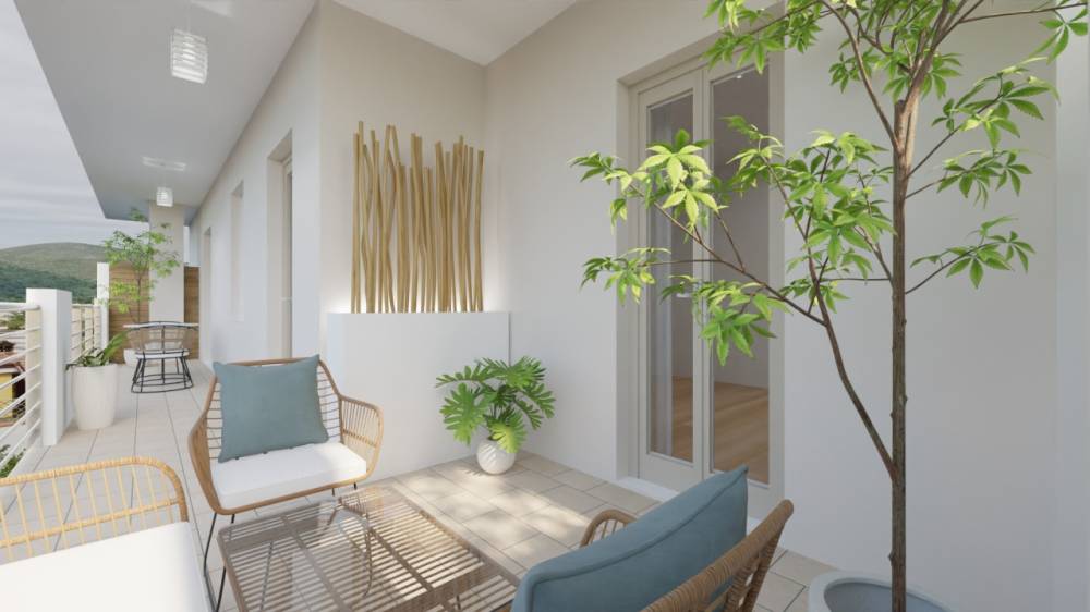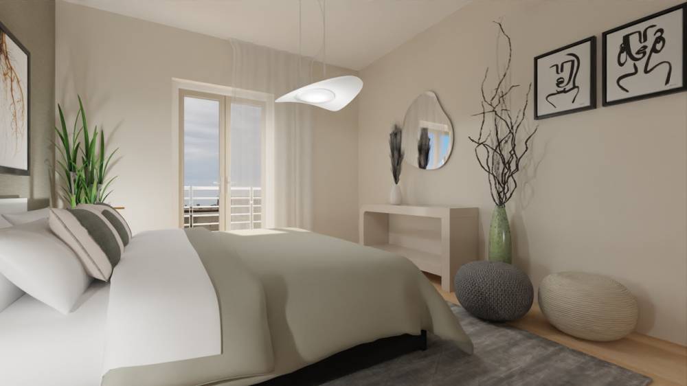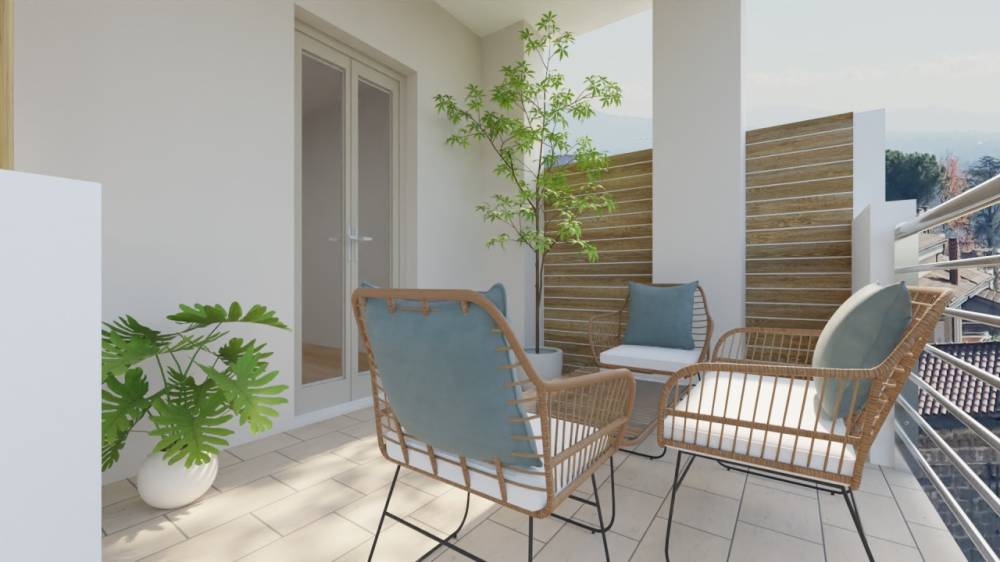 Appartamento di nuova costruzione. Sito al piano secondo e ultimo di un piccolo condominio di cinque appartamenti e con l'ascensore. L'appartamento trivano si sviluppa su tutto il piano secondo ed è composto da ingresso-salone, cucinotto, poi da un disimpegno si accede alla zona notte composta da camera matrimoniale con la cabina armadio, camera ragazzi, ripostiglio e due bagni. Ottima espsizione al sole con affaccio su ampie verande in tutti e due i lati. Verrà dotato di climatizzatori e impianto fotovoltaico. Posto auto compreso nella proposta. Classe Energetica minimo B. La presente proposta è soggetta a IVA: