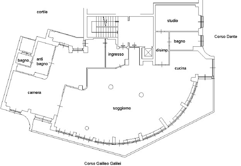 Appartamento al quinto piano situato a Torino (TO), è composto di doppi ingressi, un ampio salone, una camera da letto con bagno, un locale guardaroba, una seconda camera da letto con studio, un secondo bagno e un disimpegno. Di pertinenza dell'abitazione una cantina e una autorimessa interrate.