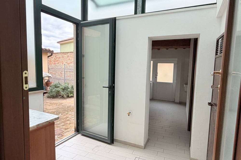 La proprietà, dotata di doppio accesso, ha una superficie commerciale pari a circa 200 mq. mentre la superficie interna della residenza è di circa 170 mq. così suddivisi: al piano terra troviamo l'ingresso principale direttamente sulla sala da pranzo, un soggiorno, un vano adibito attualmente a camera da letto con accesso allo scoperto sul retro del fabbricato che misura circa 32 mq., una cucina abitabile collegata sia al tinello che a una piccola veranda, anche quest'ultima collegata con lo scoperto, un locale ripostiglio completo di w.c., con accesso diretto dalla via retrostante (ingresso secondario); dalla sala da pranzo, tramite una rampa di scale in muratura, si accede al piano primo, composto da due camere da letto matrimoniali e una camera singola, oltre a un bagno con finestra ed un piccolo balcone con piacevole affaccio sul retro dell'immobile e sulle case del borgo.