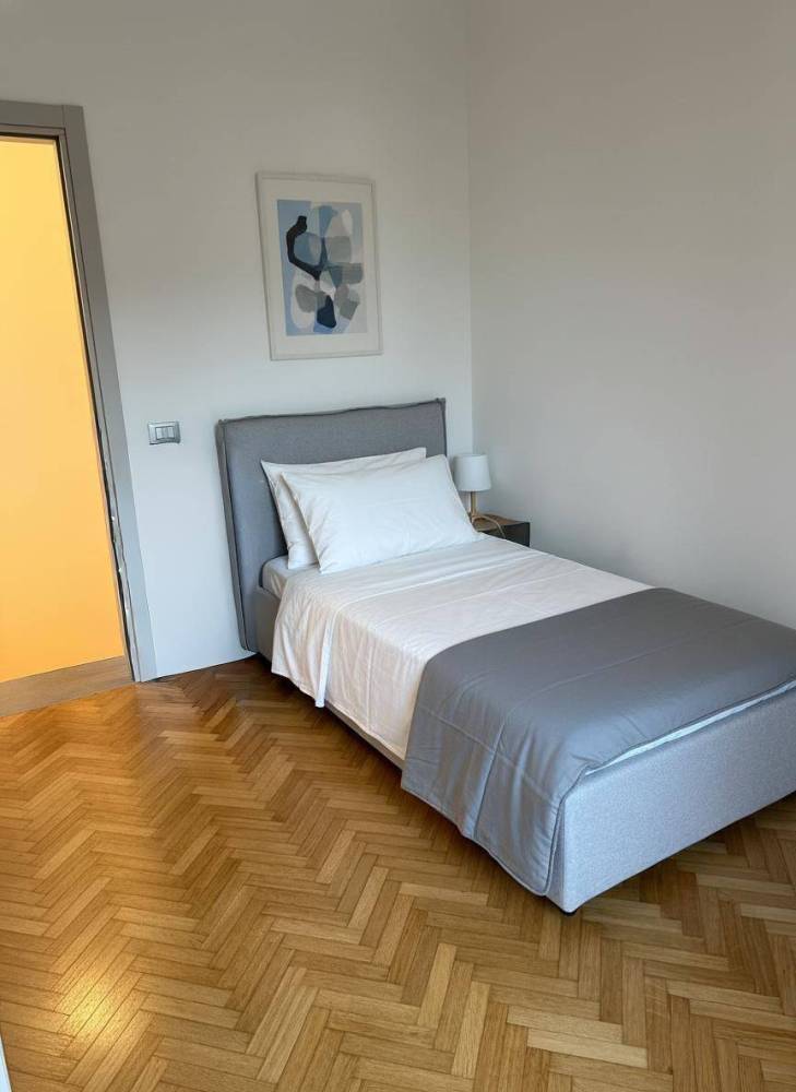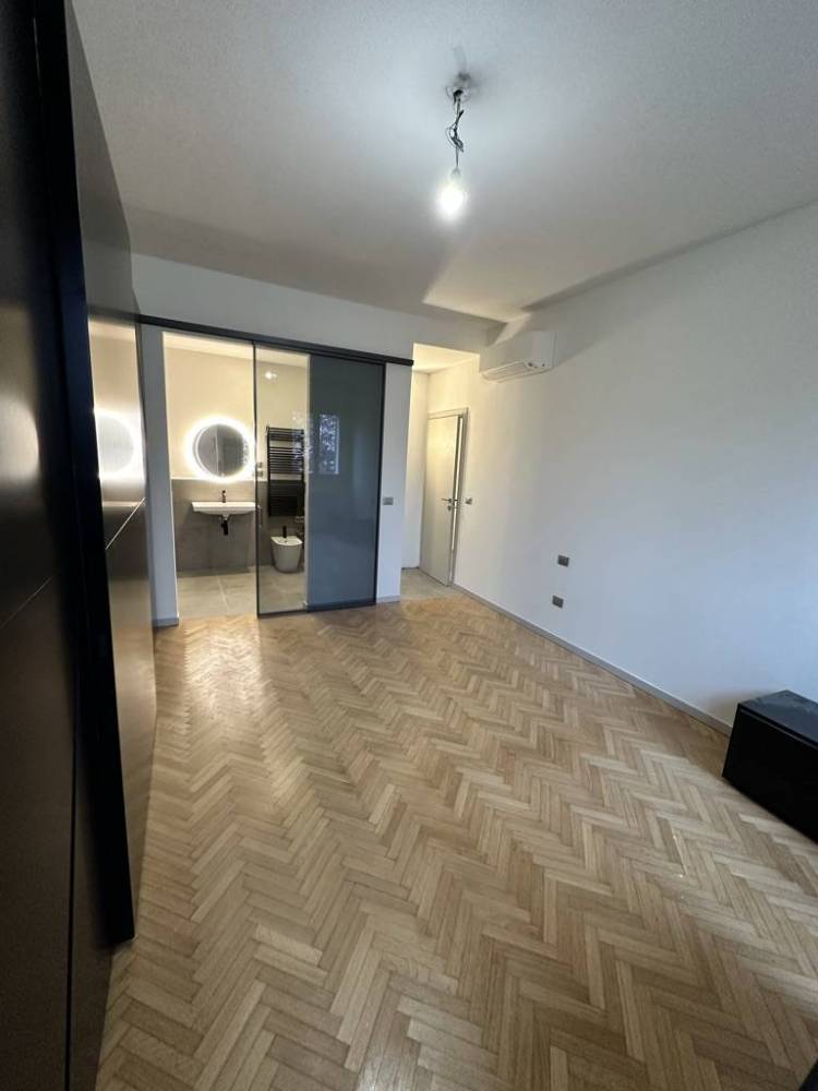 Sito al piano primo senza ascensore, nella splendida Via Cosme' Tura, appartamento di nuova ristrutturazione di circa 160 mq composto da ingresso, salone open space con zona pranzo e cucina a vista. Dal salone si accede al terrazzo di proprietà di circa mq 30 con affaccio sul giardino condominiale.