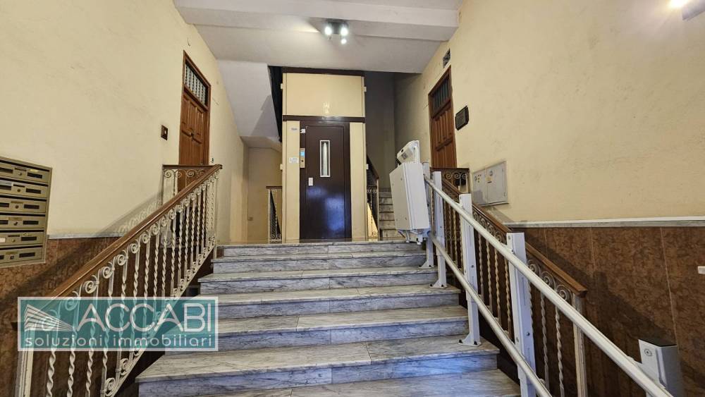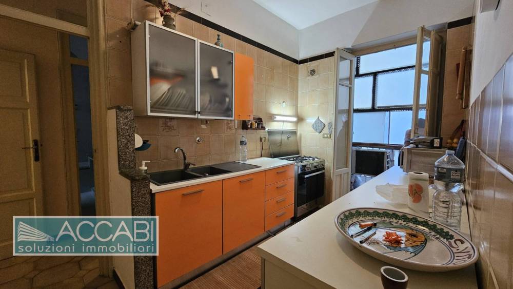 L'appartamentino di 100 mq catastali, molto funzionale nel suo insieme, è così composto: Ingresso su disimpegno, Cucina non abitabile, 4 vani tre dei quali con esposizione su balcone, Servizio con vasca, I balconi hanno esposizione sia sul prospetto principale che nel retro prospetto.