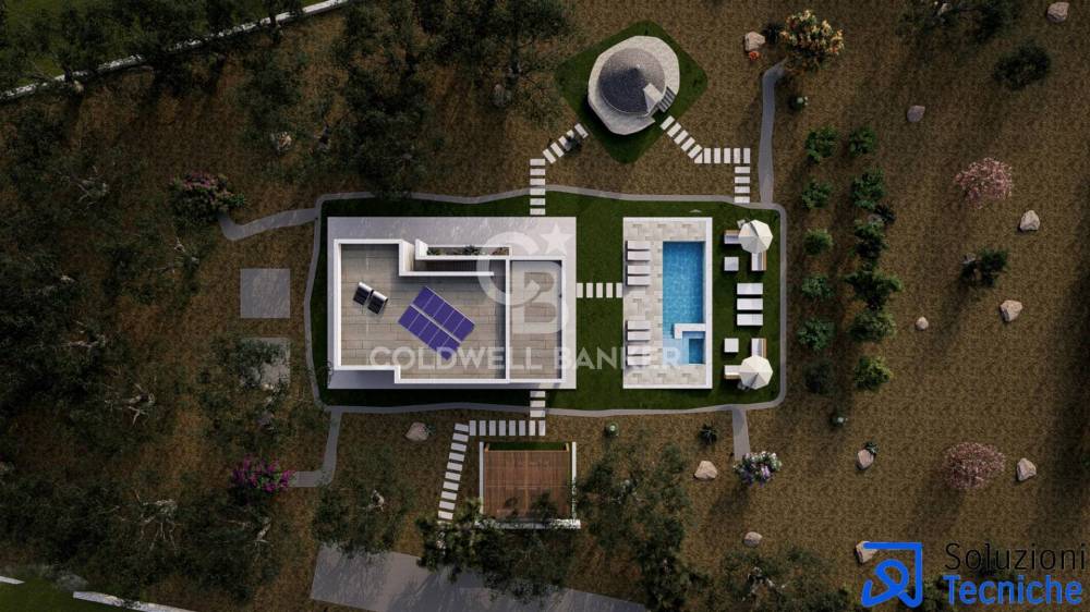 Gli esterni sono un vero valore aggiunto: un terreno privato di circa 9.300 mq avvolge la villa creando unoasi esclusiva di relax e natura. Il porticato di 30 mq offre uno spazio riparato ideale per pranzi e cene allaperto, mentre la piscina di 40 mq diventa il fulcro della vita estiva. Una suggestiva zona pranzo esterna con angolo cottura e barbecue consente di vivere appieno lesperienza mediterranea, tra convivialità e momenti di piacevole serenità. Nel giardino è presente anche un trullo tradizionale, da trasformare in un caratteristico angolo bar a servizio della piscina, un dettaglio unico che dona autenticità e charme alla proprietà.