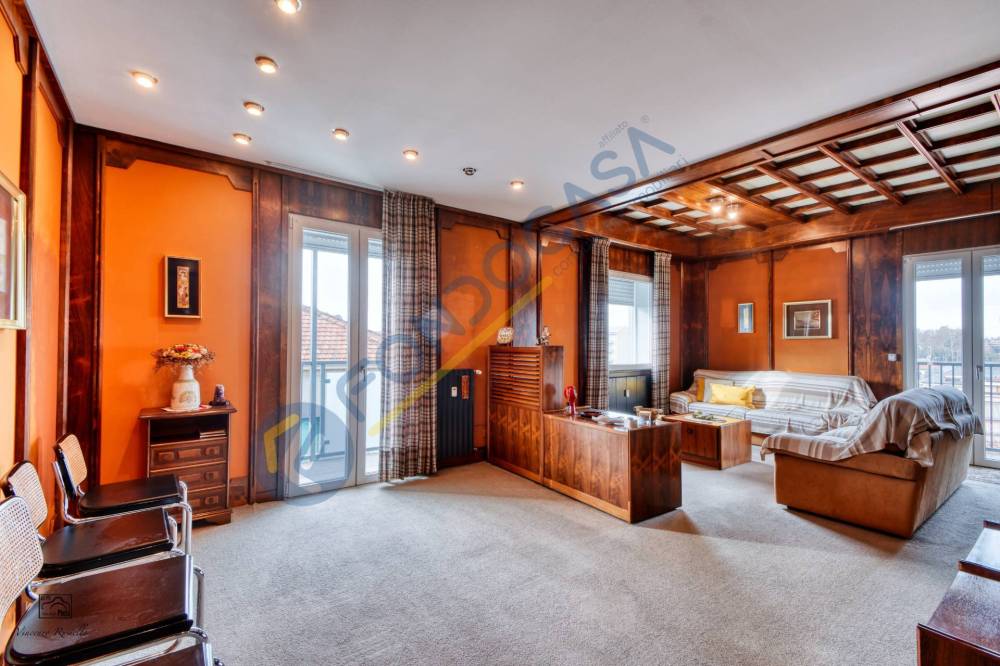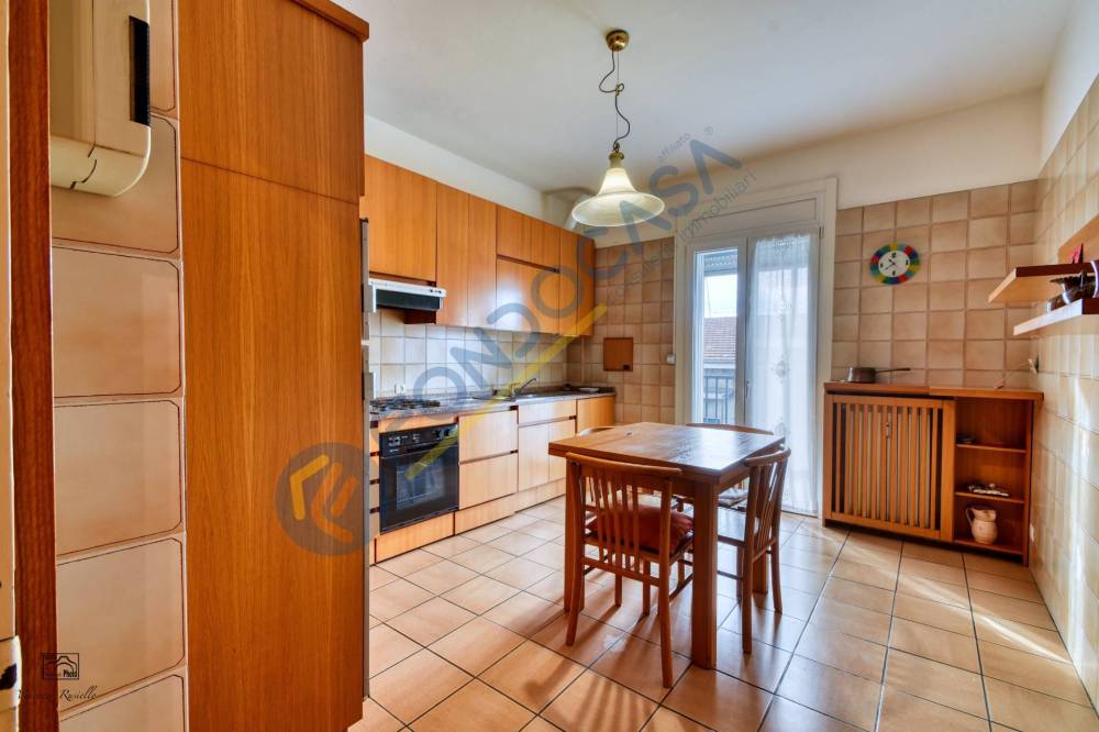 CARATTERISTICHE Sita al quinto piano in uno stabile dotato di ascensore, questa soluzione è composta da spazioso ingresso, soggiorno doppio con accesso a entrambi i balconi della casa, cucina abitabile con secondo accesso a uno dei due balconi, una prima camera con accesso al secondo balcone, camera matrimoniale con cabina armadio, disimpegno e bagno finestrato con doccia e vasca! Le dimensioni generose del soggiorno permettono di creare una terza camera da letto e ottenere facilmente un quadrilocale. Le condizioni interne sono buone: gli infissi sono in PVC con doppio vetro e ribalta, in tutta la soluzione è presente la moquette, ad eccezione di cucina e bagno dove si trova la ceramica. Il riscaldamento è centralizzato con termovalvole, l'importo delle spese comprende tutte le spese generiche e fisse ad eccezione della quota del riscaldamento a consumo. E' presente l'impianto di aria condizionata. L'appartamento ha tripla esposizione EST, SUD e OVEST. Completano la proprietà la cantina e il box singolo di 12 mq.