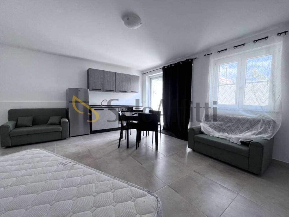 A Catanzaro lido, località Giovino, monolocale arredato a nuovo posto al piano S1 in stabile signorile di recente costruzione. L'immobile all'interno si compone da unico vano open space con ampie vetrate che danno accesso alla corte esterna ad uso esclusivo, angolo cottura e bagno con doccia. Dotato di climatizzazione con pompa di calore caldo/freddo, infissi in pvc e cappotto termico. Completa la proprietà un posto auto scoperto in corte condominiale recintata con cancello motorizzato. Ideale per studenti e/o ricercatori universitari. Disponibile da subito, contratto transitorio 12 mesi.