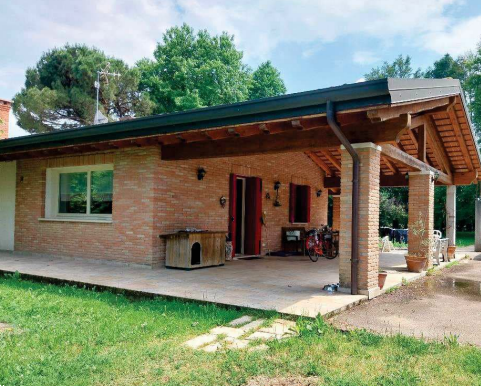 L'unità è disposta su un unico piano ed ha un ampio portico dal quale si accede alla zona giorno costituita da un ampio soggiorno aperto sulla zona cucina pranzo, la zona notte e servizi è separata, accessibile da un