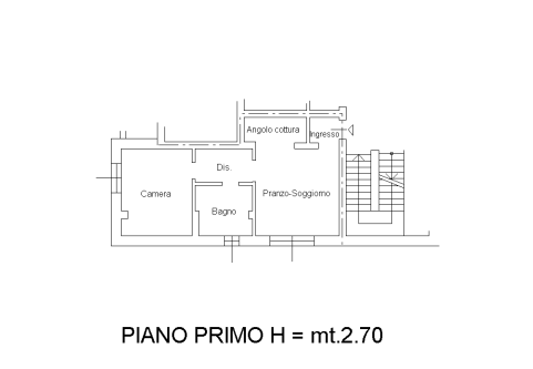 Unità al primo piano costituito da ingresso, soggiorno-pranzo con angolo cottura, disimpegno, camera e bagno, con cantina accessoria al piano terra, oltre autorimessa e posto auto scoperto al piano terra.