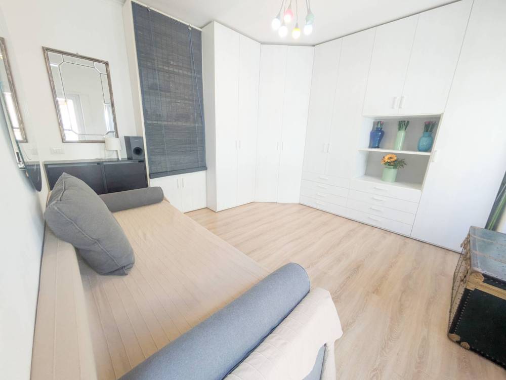 Lingresso accoglie in un ambiente funzionale che distribuisce gli spazi interni: una camera matrimoniale ampia, una cucina vivibile, un bagno finestrato completo di box doccia e un comodo armadio a muro.