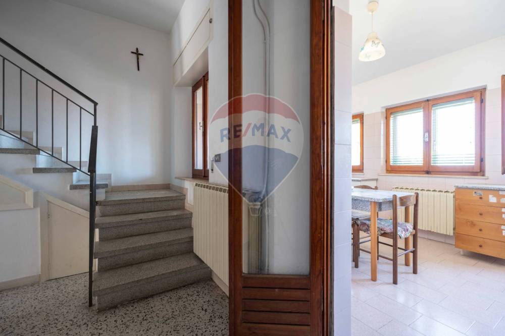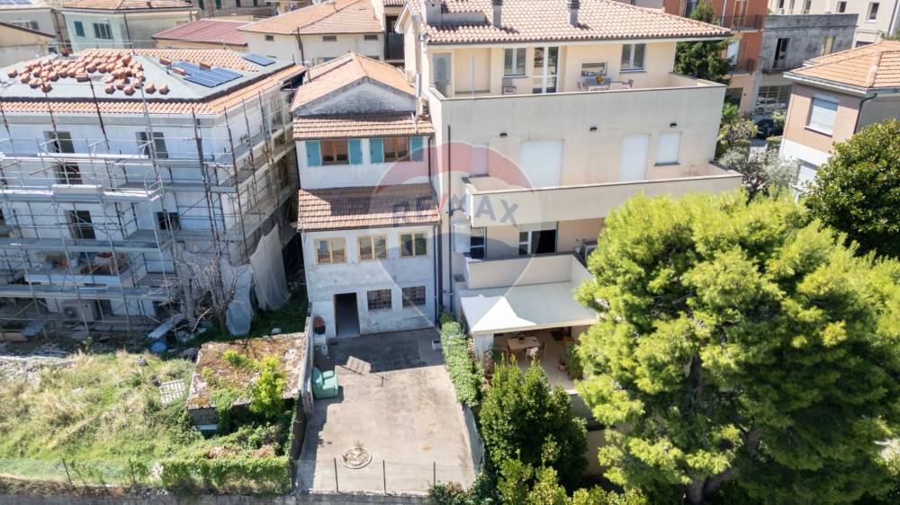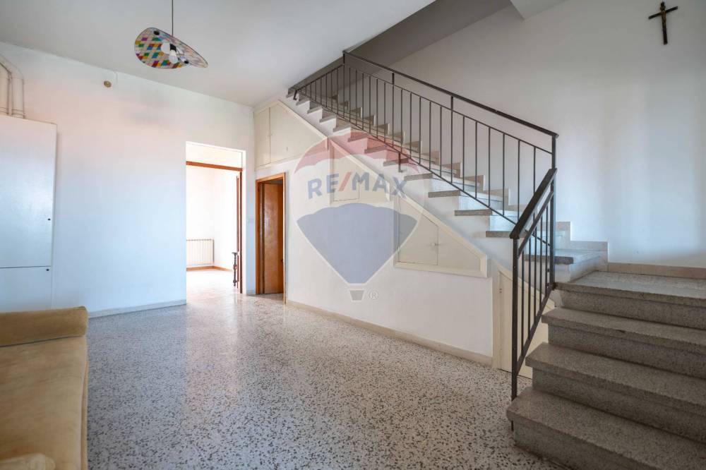 Piano terra: cortile privato di 10 mq allingresso principale; ampia zona giorno di 70 mq: Soggiorno doppio con cucina con vista Monte Conero, dotata di camino con canna fumaria in acciaio, studio e bagno.