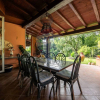L'immobile presenta un doppio ingresso e ha una metratura interna di circa 300 mq distribuiti su due livelli, completata da un giardino con bosco di proprietà e un' ampia veranda con accesso diretto ad esso.