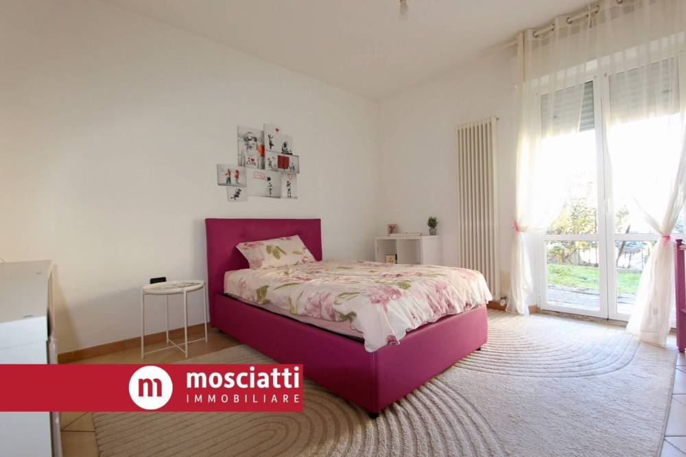 - al piano terra APPARTAMENTO di mq. 80 circa, con accesso diretto al GIARDINO, e internamente composto da ingresso, soggiorno, cucina, disimpegno zona notte, due camere e bagno.