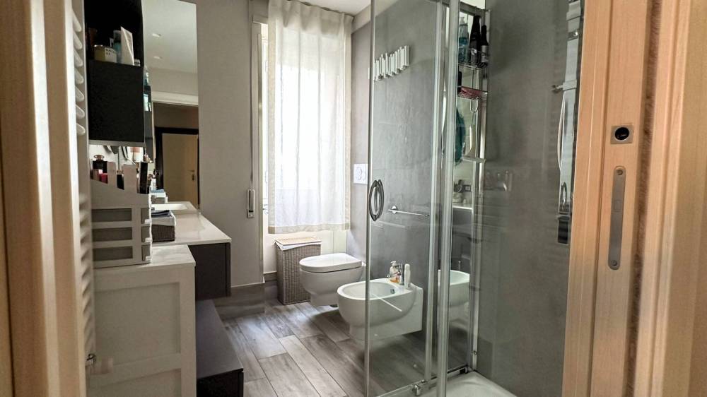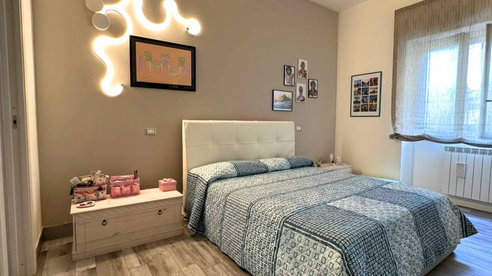 Proponiamo in vendita un trilocale ristrutturato con giardino terrazzato e finiture di pregio. In contesto riservato e tranquillo, proponiamo in vendita un raffinato trilocale di circa 100 mq, completamente ristrutturato con materiali di alta qualità e cura nei dettagli. Labitazione si apre su un accogliente soggiorno e una moderna cucina con isola centrale, affacciata su unampia zona pranzo caratterizzata da un elegante rivestimento in mattoncini di geopietra, che dona calore e personalità agli ambienti. Attualmente limmobile dispone di una sola camera da letto matrimoniale, ampia e luminosa, completa di cabina armadio e bagno en suite finestrato. È comunque possibile ripristinare con facilità la seconda camera, rendendo lappartamento adatto anche a famiglie o a chi necessita di uno spazio aggiuntivo. A servizio dellabitazione è presente un secondo bagno, anchesso finestrato, accessibile dalla zona giorno. Esternamente, la proprietà è impreziosita da un ampio giardino terrazzato, ideale per momenti di relax e convivialità, dove trova spazio anche una comoda rimessa esterna, utile per il rimessaggio di attrezzi, biciclette o arredi da esterno. L'immobile è dotato di impianto di riscaldamento autonomo con radiatori Cordivari e climatizzatore Daikin 12000 BTU caldo/freddo, per garantire il massimo comfort in ogni stagione. Soluzione pronta da abitare, perfetta per chi cerca ambienti moderni, funzionali e con spazi esterni ben fruibili.