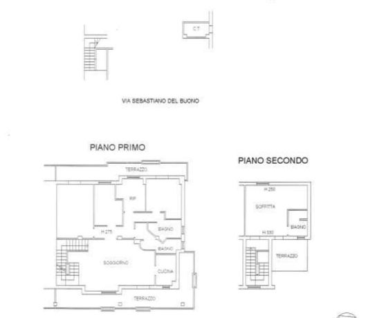 Unità facente parte di un più ampio edificio residenziale, situata al primo piano composto da quattro vani, oltre cucina, ripostiglio, disimpegno, due bagni, due terrazzi, oltre rampa di scale d'ingresso, locale centrale termica, resede tergale di 30,00 mq e soffitta con bagno e terrazzo a tasca al piano secondo.