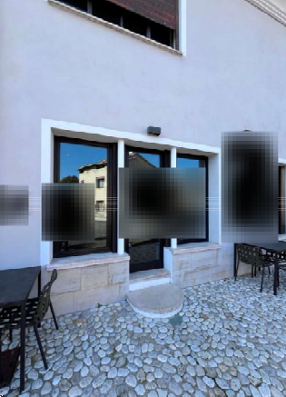 L'immobile è composto da un ristorante e un'abitazione. Il ristorante si sviluppa al piano terra con ingresso, sala principale, cucina, dispensa, due ulteriori sale ristorante separate da un caminetto, tre servizi igienici con antibagno. Al piano interrato, accessibile solo dal cortile esterno, si trovano magazzino e cantina.