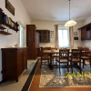 Al piano terra, lingresso di rappresentanza introduce a spazi luminosi e raffinati: un elegante soggiorno con affaccio diretto sul portico, ideale per vivere gli esterni in continuità con gli interni, e che si apre sul parco privato della villa; cucina abitabile con dispensa, due stanze versatili e un bagno. I pavimenti originali in marmette esagonali greificate valorizzano lautenticità dellepoca.