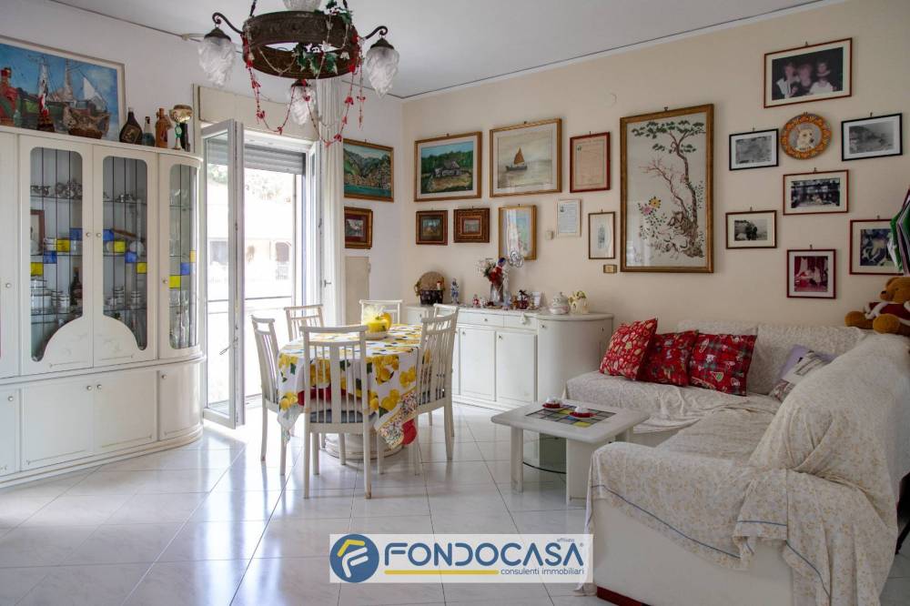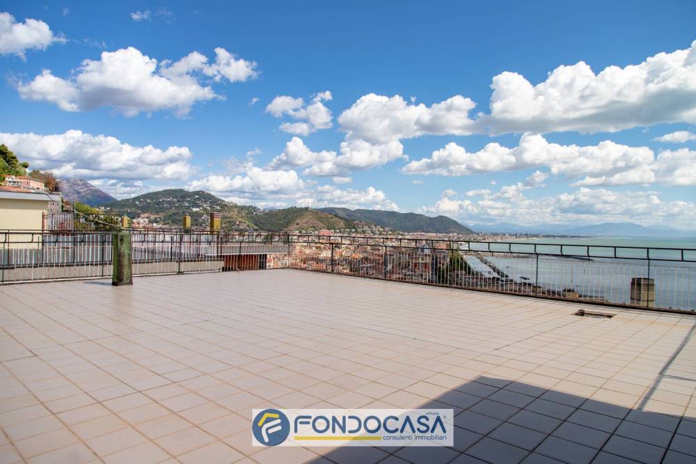 Lo stato conservativo dell'appartamento è buono, con una spaziosa cucina abitabile, una balconata a livello che abbraccia quasi tutte le camere, che offre una magnifica vista mare. L'immobile gode di una posizione panoramica privilegiata.