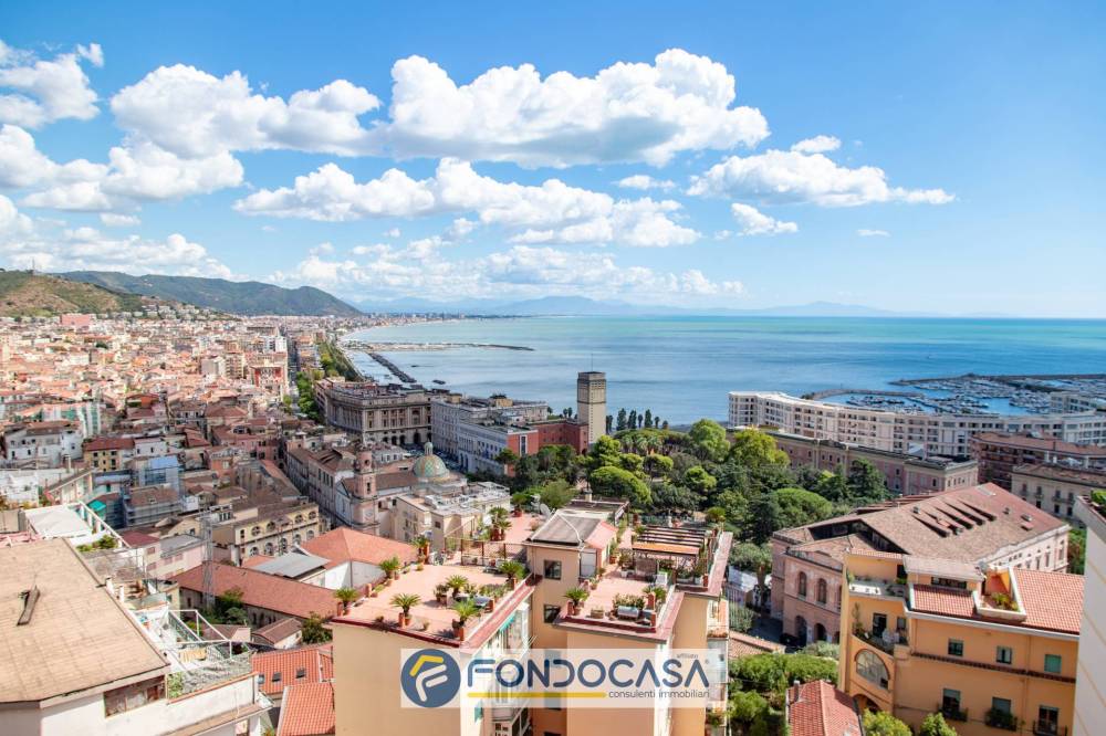 Inoltre, il terrazzo di circa 130mq offre un'atmosfera unica e la possibilità di godere di splendide serate all'aperto con vista mozzafiato sul teatro verdi , la stazione Marittima e il meraviglioso Golfo di Salerno.