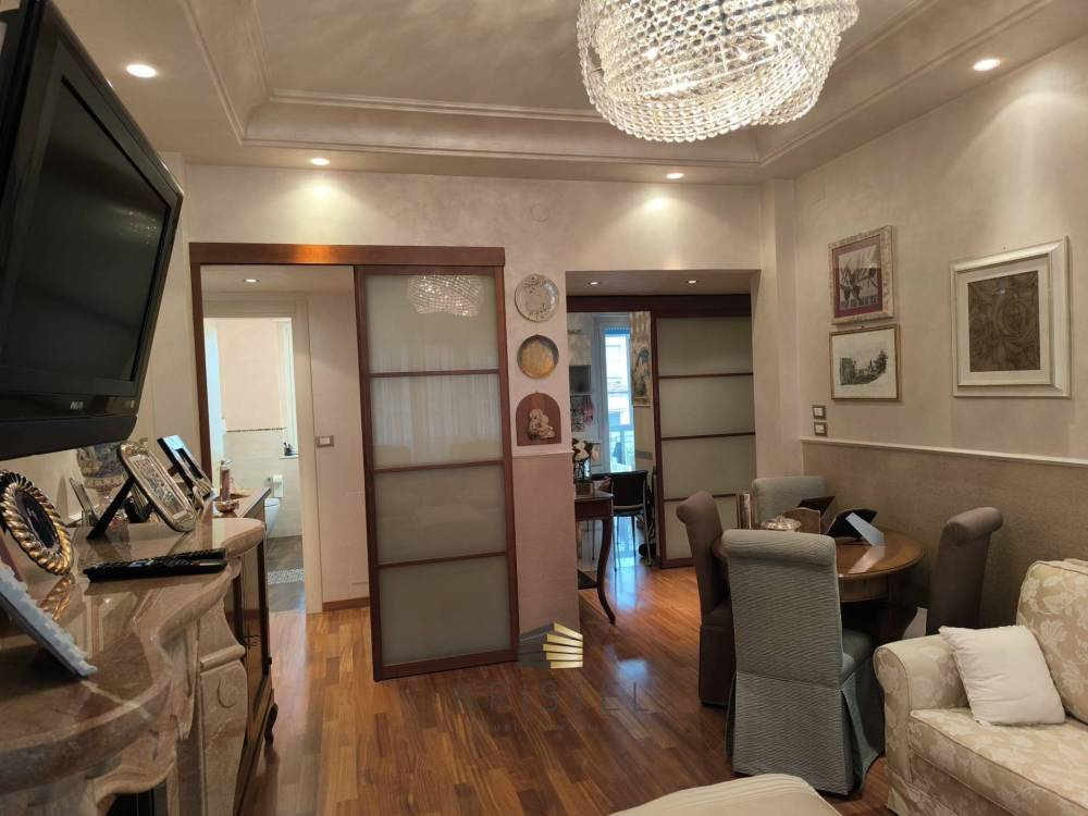 L'immobile è dotato di finiture di pregio come pavimentazione in parquet esclusa cucina e bagni, rivestimenti in ottima ceramica, porte scorrevoli e soffitti decorati.