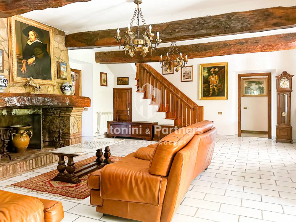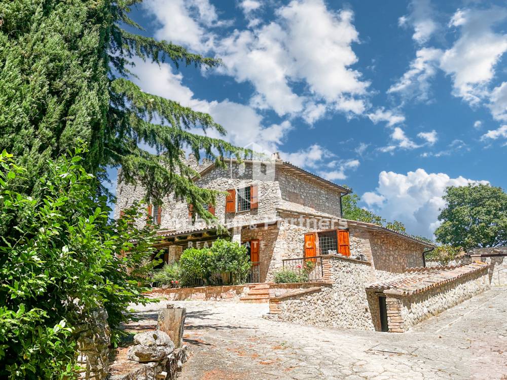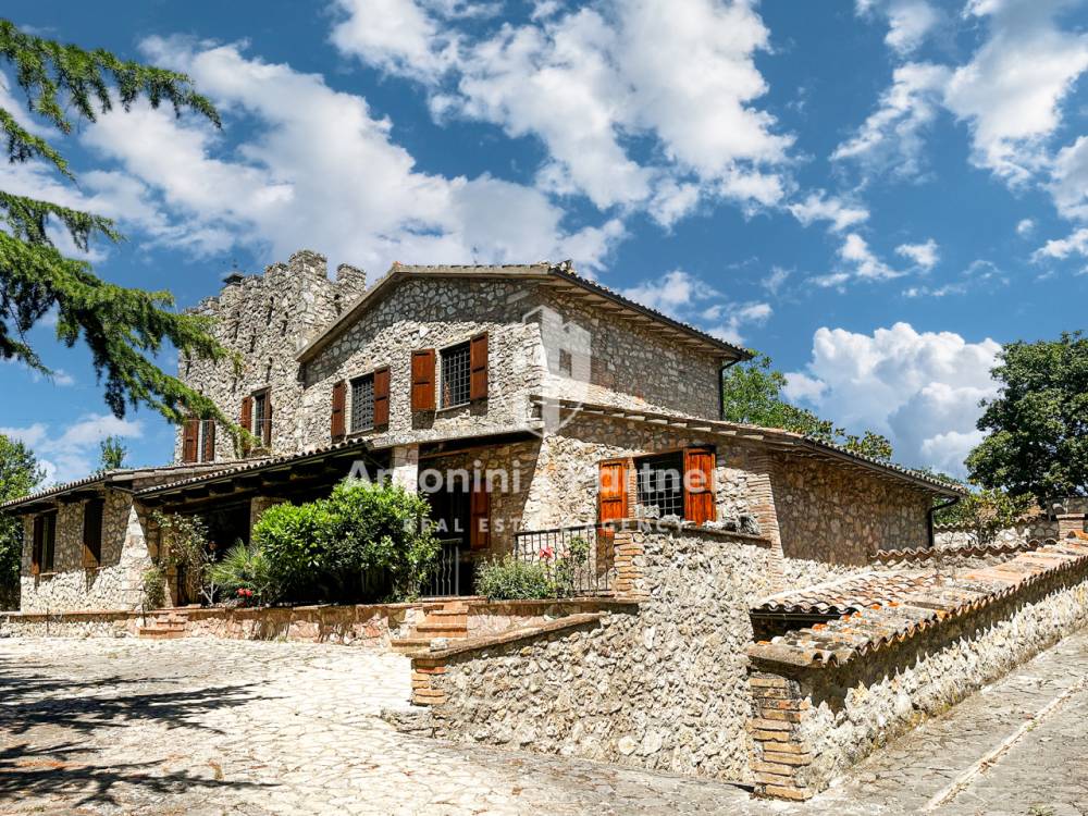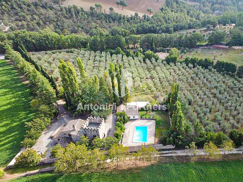 Casale dei Merli è un antico casale del 1700 con piscina e torretta, immerso nel verde della campagna umbra. Si trova a 3 km da Massa Martana, splendido borgo medioevale perfettamente conservato e non lontano da Todi e Montefalco. Posto alla sommità di un dolce colle, domina dall'alto la lussureggiante natura circostante che lo avvolge in un susseguirsi di campi di grano e girasole, uliveti e boschi di lecci. Sullo sfondo le cime dei Monti Martani. Una proprietà esclusiva che si compone del casale principale (di 320 mq), un secondo edificio (di 94 mq), adibito a magazzino/cantina, un'ampia corte esterna con piscina e un grande appezzamento (12756 mq) di terreno agricolo. Il casale principale è stato completamente restaurato. Esternamente presenta eleganti facciate in pietra naturale, merlature e un ampio porticato. Internamente, ambienti ampi e luminosi, grandi camini in pietra e bagni in marmo. La corte esterna è completamente recintata e dispone di piscina. Il terreno agricolo è composto principalmente di grande uliveto che eccelle per produzione e qualità dell'olio. Caratteristiche Casale dei Merli è un'abitazione d'importanti dimensioni disposta su due piani con torretta e un seminterrato: - Un piano terra introdotto da un ampio porticato che si compone di cucina abitabile con camino, ampio soggiorno, salone anch'esso con camino, studio, un disimpegno e un bagno. - Un primo piano introdotto da un'elegante scalinata in legno a sua volta composto di un'importante camera padronale con bagno en suite, due ulteriori camere da letto e un secondo bagno. - E infine un ripostiglio/magazzino semi interrato con ingresso indipendente. L'annesso disposto si compone invece di due cantine con ingresso indipendente, un magazzino, un'area forno, un bagno e i locali tecnici. La superficie scoperta ospita la rimessa attrezzi e il garage. Esterni Casale dei Merli dispone di una fantastica corte esterna e un uliveto. La superficie ampia è completamente recintata. Ottimamente divisa in aree funzionali è impreziosita da numerose piante d'alto fusto. Si compone di: un sontuoso viale d'ingresso, un giardino rustico, parcheggio con pergolato, e una splendida area relax composta di piscina, solarium, barbecue e terrazzo. Completa la proprietà il grande uliveto di oltre 600 piante in produzione. Uso e destinazioni Casale dei Merli è una splendida dimora in un luogo unico. Le dimensioni sono importanti, il fascino esclusivo, la corte esterna strepitosa. Una prima o seconda casa lontana dallo stress cittadino e vicina a tutti i servizi dove è possibile gustare il proprio olio, godere appieno la bellezza del luogo e vivere al massimo l’alternarsi delle stagioni. Attualmente inserita nel fiorente mercato internazionale di dimore di campagna, particolarmente attivo in Umbria, può rappresentare anche un'ottima fonte di reddito per il suo compratore. Distanze Casale dei Merli è posto al centro dell'Umbria. Ben collegato alle principali arterie stradali e a tutti i servizi. Il centro di Massa Martana distasa solo 3 km, Todi è a 18 km, Montefalco a 12 km, Orvieto a 38 km. Roma e i suoi aeroporti sono a poco più di un’ora di macchina.