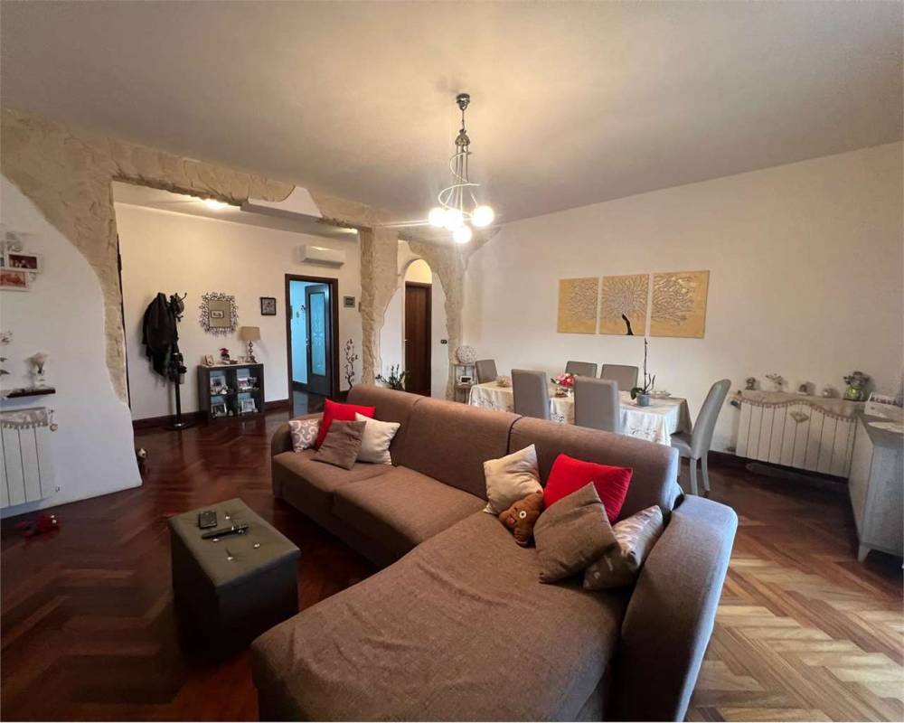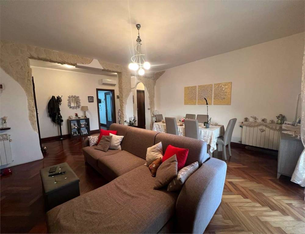la casa ha ingresso su un grande e signorile salone aperto e con balcone esclusivo, cucina abitabile con balcone esclusivo e doppio servizio (con wc, pilozza e angolo lavatrice), disimpegno, bagno con doccia e finestra, camera da letto matrimoniale con finestra, camera da letto con finestra, comodo ripostiglio.