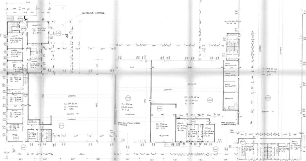 servizi, da un piano seminterrato ad uso deposito di mq 112 e da alcuni vani ad uso mensa e servizi al piano primo con vani ad uso deposito e spogliatoi.