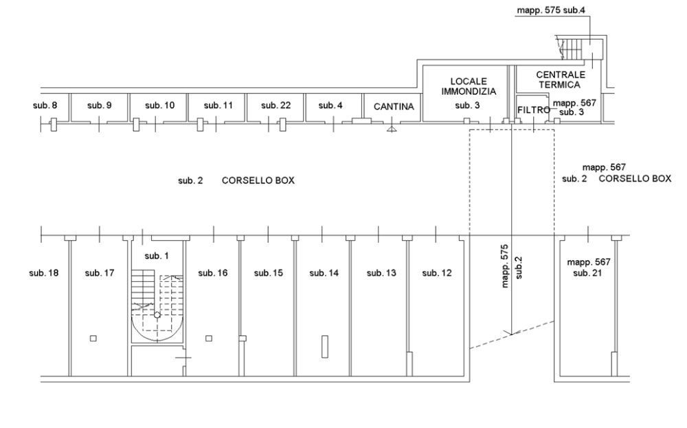 I beni sono situati al piano interrato di un edificio residenziale e godono di una superficie di 26,00 mq e 6,00 mq.