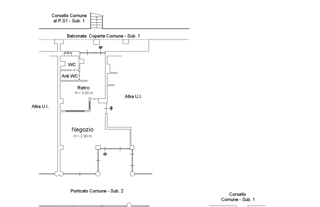 Unità commerciale in condominio collocata al piano terra composta da un locale commerciale con accessorio diretto, un locale bagno.
