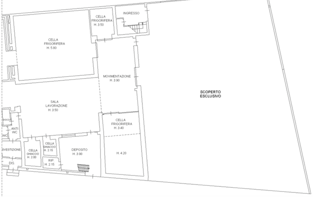 L'immobile è situato a Chioggia (VE), lungo la strada statale Romea, Trattasi di un capannone industriale a uso commerciale/artigianale composto da una zona adibita ad ufficio al primo piano, di circa mq 115, da locali per lo stoccaggio e il congelamento del pesce posti al piano terra di circa mq 1.117 e da uno scoperto esclusivo di circa mq 3.754.