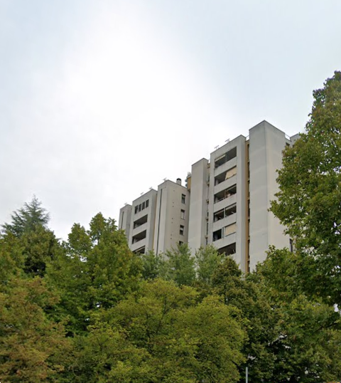 Appartamento posto al sesto piano di un complesso condominiale di circa 107 mq, composto da cucina e soggiorno con poggiolo, tre camere e due bagni, corridoio e ripostiglio, con autorimessa di 13 mq e cantina di 10 mq al piano semi interrato.