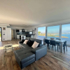 La zona abitativa principale, di circa 90 mq, si articola in un'ampia cucina con penisola integrata al soggiorno, entrambi immersi nella luce naturale grazie alle maestose porte-finestre che si aprono su una veranda panoramica. La camera da letto matrimoniale è anch'essa orientata verso il mare, regalando una continuità visiva che conferisce un senso di pace e armonia. Il bagno completa elegantemente il livello principale, che dispone inoltre di una seconda veranda collocata sull'ingresso, ideale come spazio di accoglienza.