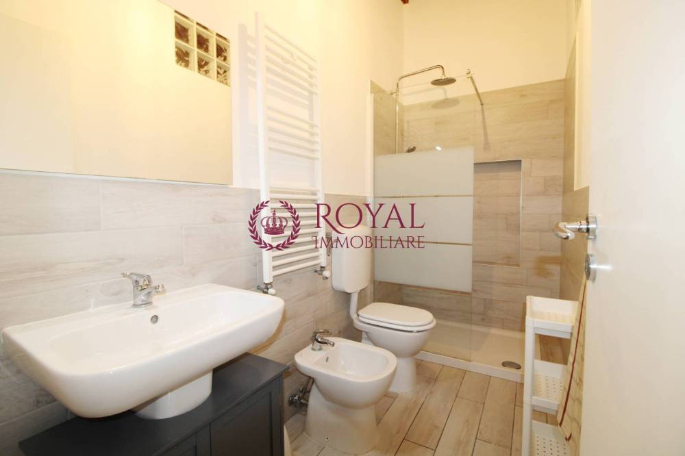 Anche il bagno, con doccia e sanitari di design, è stato recentemente ristrutturato e presenta un'atmosfera moderna e funzionale.