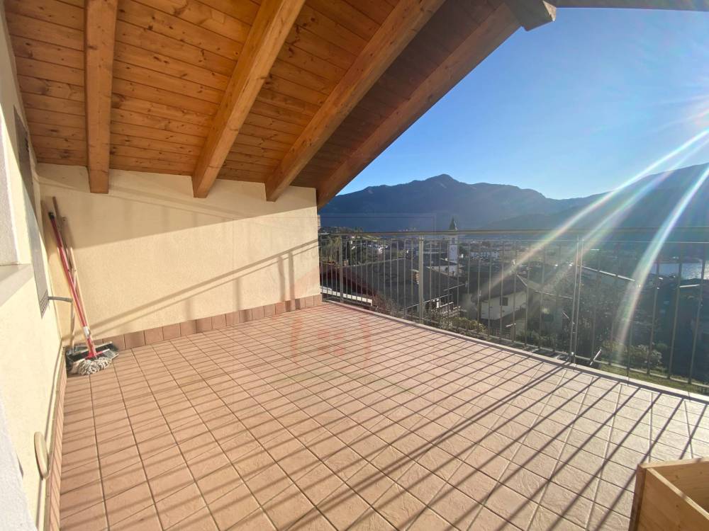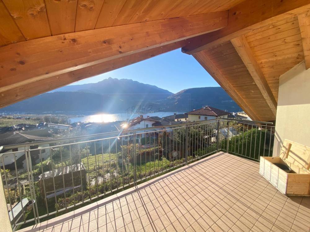 Dalla zona giorno si accede al terrazzo molto sfruttabile grazie alle generose dimensioni e che fa godere di una meravigliosa vista sul lago di Caldonazzo.